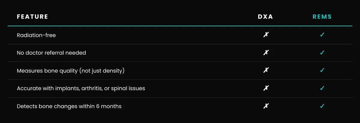 Traditional DXA scans miss critical information. REMS captures what DXA cannot.
